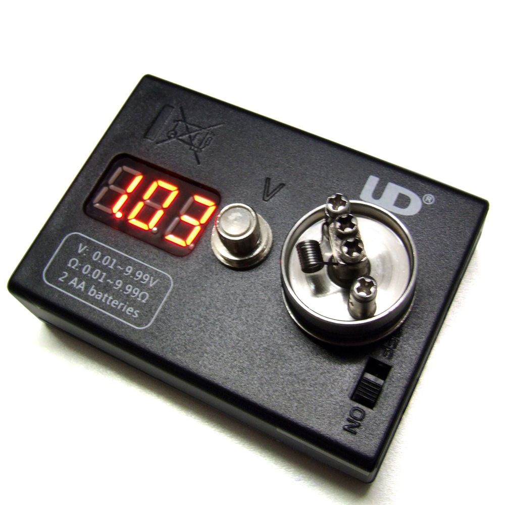 Using the Ohmmeter supplied within the UD Coil Mate tool kit, we can confirm the resistance of the coil. We aimed for a 1 Ohm resistance using the Steam-Engine resistance calculator. The final resistance of one coil is 1.03 Ohms as can be seen here.